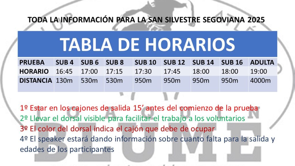 1️⃣ ⏰ Estad en los cajones de salida 15 minutos antes del comienzo de la prueba 🕒✅